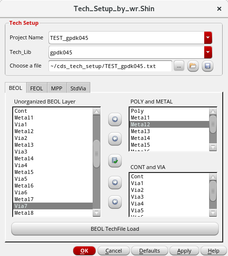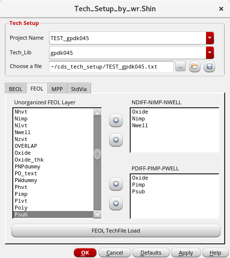 The PTAP setting in FEOL is for illustrative purposes only. The actual layer configuration may differ from what is shown in this example.